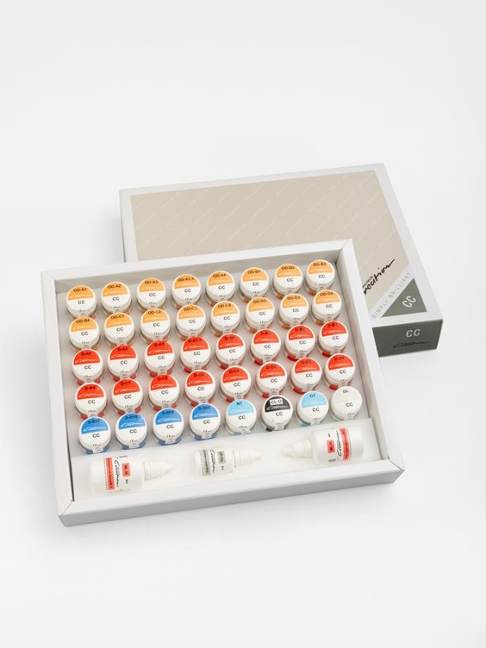 Il Kit CC/ Kit 1 di Creation comprende tutte le dentine nomali ed opache di Creation ed i relativi smalti abbinati.