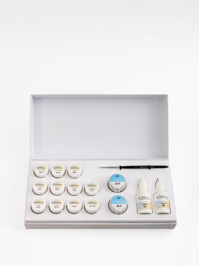 Creation Magic Colour è un sistema di supercolori per la caratterizzazione individuale di restauri odontotecnici. La combinazione polvere-liquido apre a numerose applicazioni ed elaborazioni di colore per conferire una migliore brillantezza. Come tutte le ceramiche Creation, anche i Magic Colour sono prodotti in Feldspato naturale. Miscelati con i liquidi GL, i colori diventano una pasta ultra-performante che permette di ottenere effetti cromatici naturali e profondità estetica utilizzando la tecnica di microstratificazione, ideale per stratificare gli strati molto sottili risaltando i dettagli.