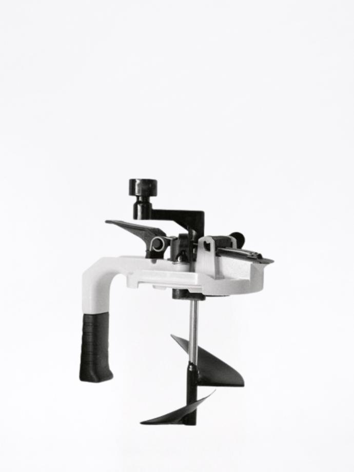 Strumento per la miscelazione del catalizzatore Polyurock fissabile sul contenitore del materiale di base.