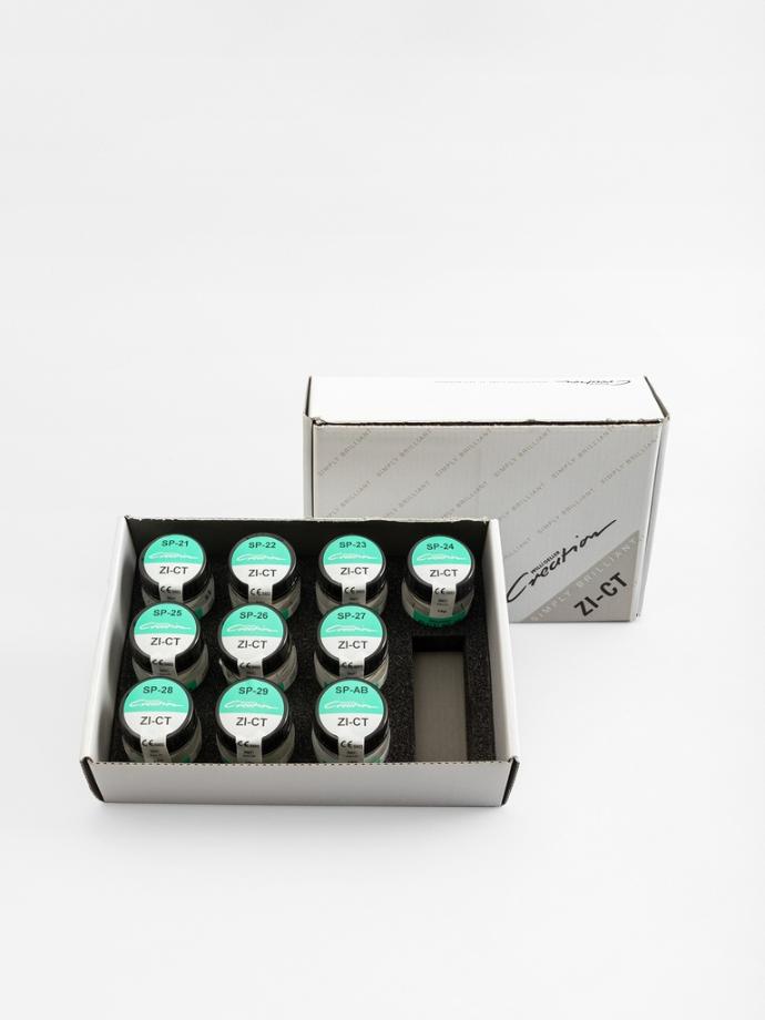 Il kit per masse spalla ZI-CT contiene tutte le masse per stratificare le spesse con la ceramica Creation ZI-CT.