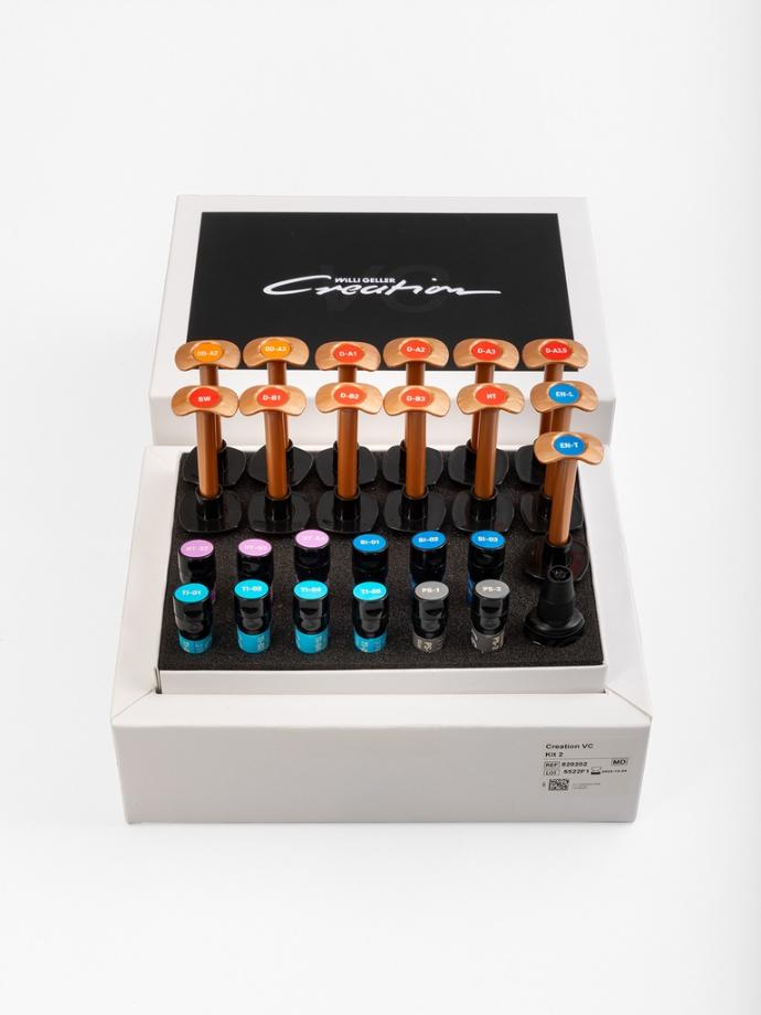 Colori brillanti, dinamismo luminoso naturale e un'elevata qualità di lavorazione e sistema: Creation VC è un moderno composito microibrido, che dispone non solo di una stabilità meccanica senza precedenti, ma anche di un’opalescenza e di una traslucenza bilanciate. Basato sulla tecnologia MFR ibrida e sul collaudato Color-Coding Concept, il sistema modulare completo Creation VC offre all’odontotecnico un numero praticamente illimitato di combinazioni di colori, strutture e una vasta gamma di diverse consistenze e possibilità di lavorazione.
