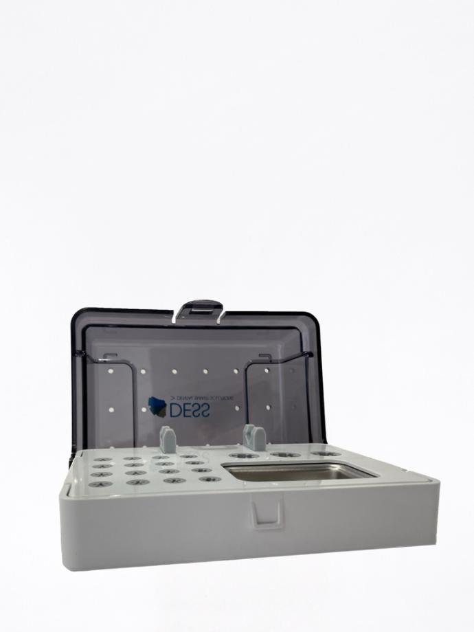 Scatola multiuso ideale per la pulizia e la sterilizzazione rapida degli strumenti dentali, per organizzare gli strumenti DESS più facilmente. Pulizia e una sterilizzazione degli strumenti facili e complete. Il contenitore multiuso DESS® è realizzato in materiale resistente, con dettagli in silicone integrati.