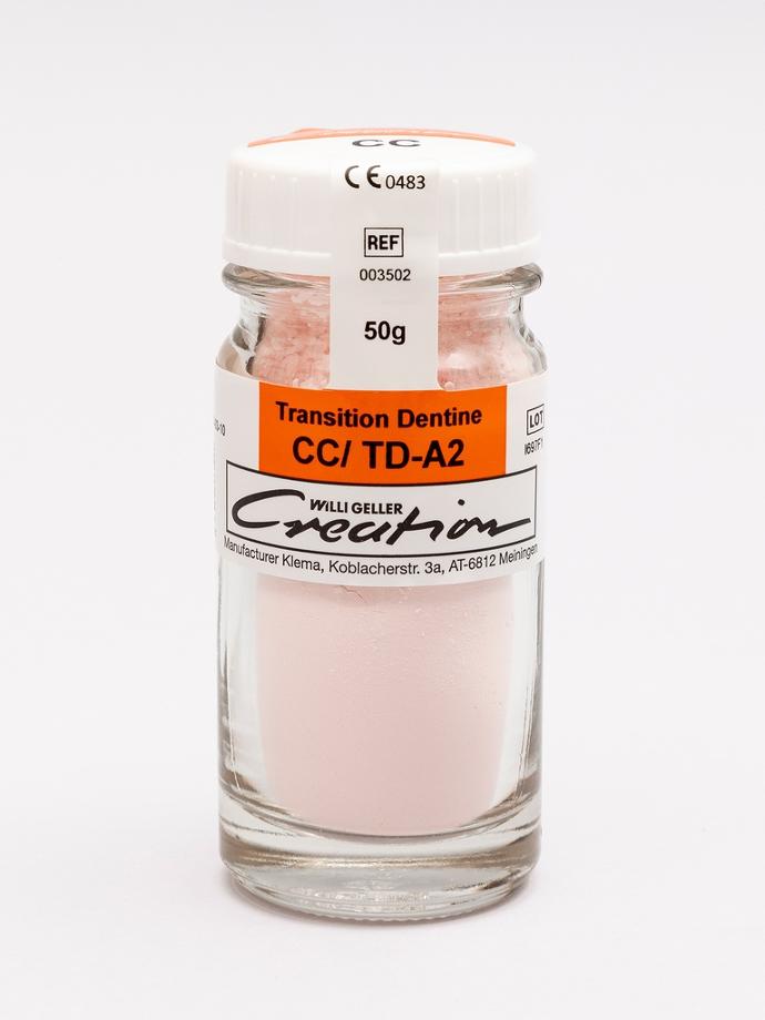 CC/ Transition Dentina è una massa ceramica con un elevato grado di traslucenza, ideale per garantire una transizione armoniosa fra la dentina e la massa incisale, sia per i restauri altamente estetici dei denti frontali che per quelli laterali.