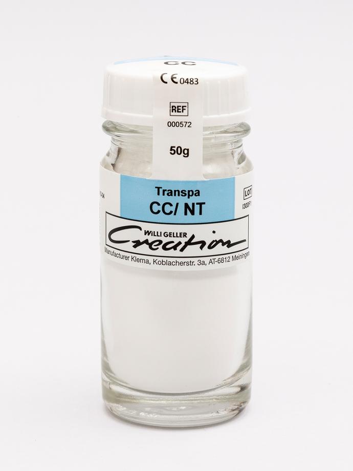 CC/ Transpa è una massa ceramica in polvere di Creation Willi Geller utilizzabile in fase di rifinitura prima della cottura adatta per esaltare la trasparenza nelle zone incisali e molto sottili del restauro, simulando l’aspetto del dente naturale.