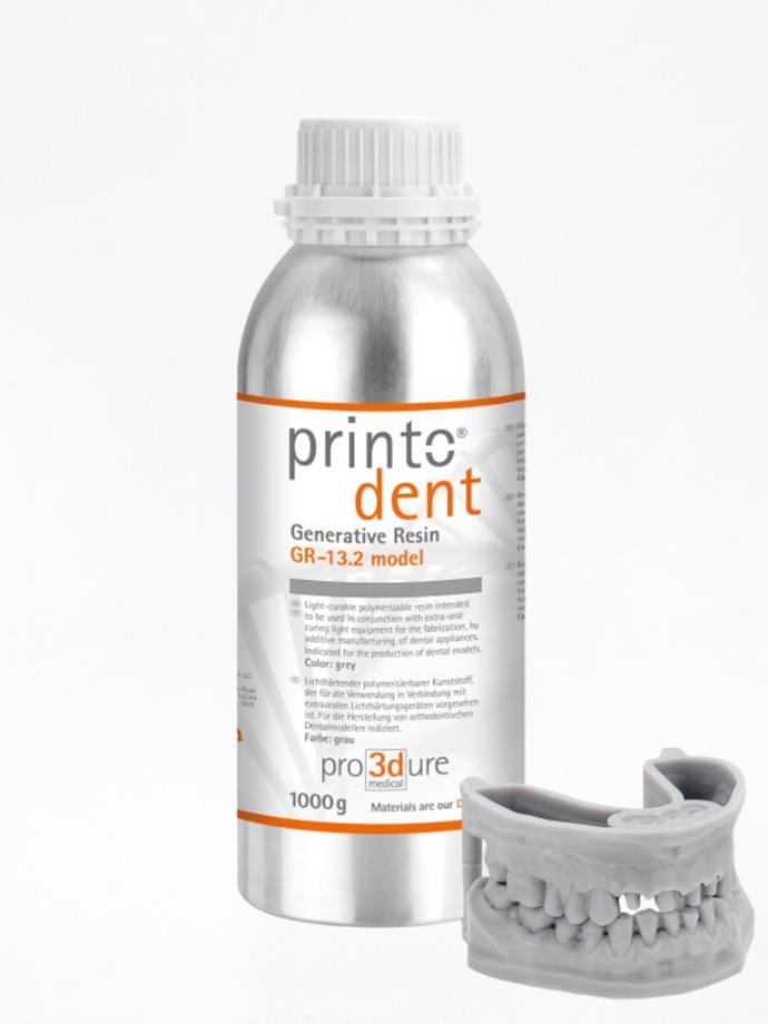 Printodent® GR-13 di pro3dure è una resina per stampanti 3D per la fabbricazione di modelli dentali con un alto livello di definizione dei dettagli. Grazie al colore grigio e all’opacità della resina, le linee di margine e tutte le caratteristiche importanti del modello risultano perfettamente visibili. I modelli dentali della serie GR-13 possono essere utilizzati nei processi di termoformatura grazie alla loro stabilità termica. Inoltre, l’implementazione di modelli stampati in 3D è supportata anche nel flusso di lavoro digitale.