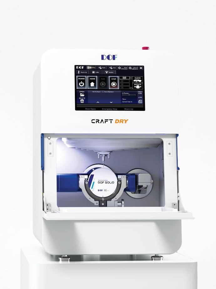Craft DRY è un fresatore a secco di DOF ideale per la fresatura di dischi in Zirconia e PMMA. Le dimensioni ridotte e compatte di Craft DRY ti permettono di usufruire di una fresatrice solida ed efficiente anche in uno spazio ridotto. Questo fresatore ti facilita il lavoro quotidiano attraverso funzionalità come la sostituzione della staffa a sgancio rapido e il sistema di sostituzione automatica degli utensili per la fresatura. Possono essere gestiti fino a 21 contemporaneamente.