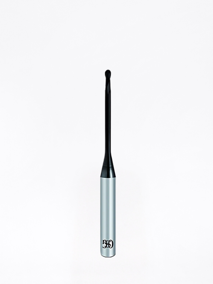 - Fresa sferica a 2 taglienti con collo lungo, ideale per il fresaggio di manufatti dentali provvosori e definitivi.