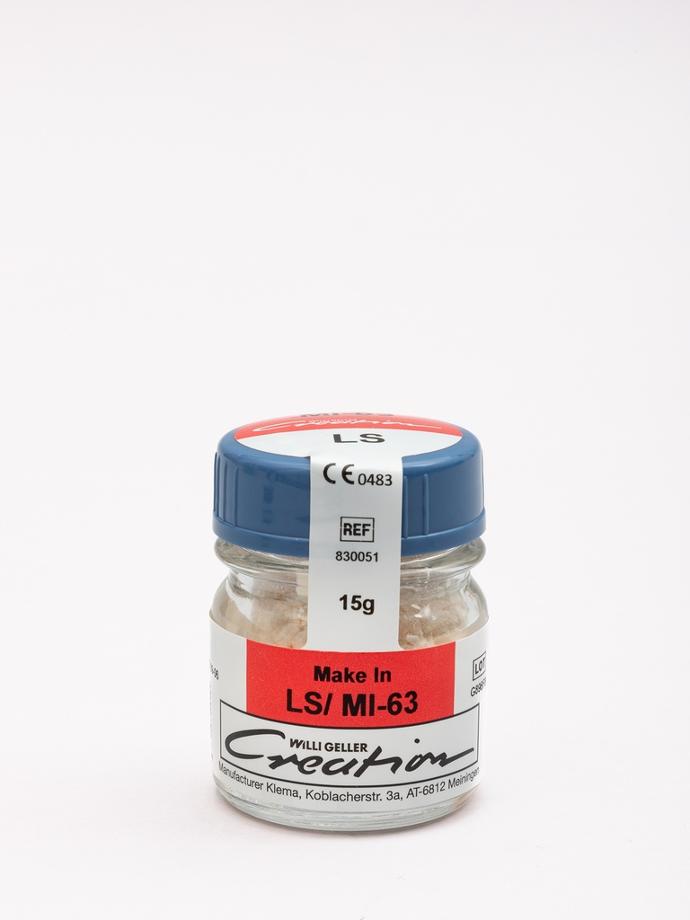 LS/ Make In è la massa ceramica di Creation applicata in fase di stratificazione degli effetti interni per ricreare i mammelloni, dandogli la forma adatta. Le masse Make In sono disponibili in 2 colori iridescenti MI-61 a MI-63.