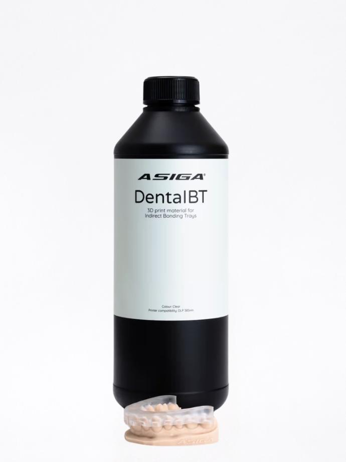 Asiga DentalIBT è una resina biocompatibile trasparente per la produzione di mascherine per il bonding indiretto. Queste mascherine vengono utilizzate per posizionare accuratamente i bracket ortodontici sui denti del paziente. Essendo trasparente, permette il passaggio dei raggi UV per il fissaggio dei bracket. La caratteristica simile alla gomma di questa resina fornisce una prese salda durante il processo di bonding e di flessibilità quando deve essere rimossa, senza disagio per il paziente.