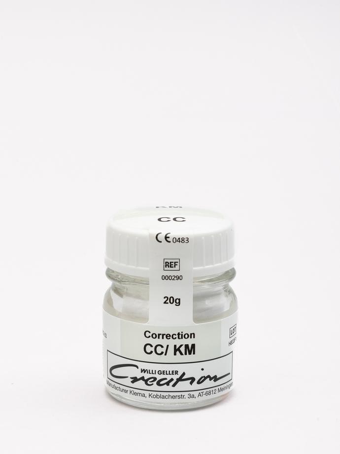 CC/ Correction Powder è una massa di correzione di Creation per metalloceramica che viene applicata per definire un'armonia cromatica perfetta tra il restauro e i denti naturali e migliorare la traslucenza, la saturazione o la brillantezza.