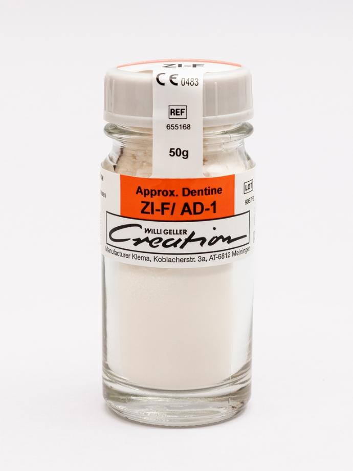 Creation ZI-F è una ceramica a basso punto di fusione ideale per eseguire rivestimenti e piccole stratificazioni su ogni tipo di armatura in Zirconia. Questa ceramica è ideale per la sua capacità di replicare riflessi luminosi naturali. Grazie al contenuto di feldspato, è molto resistente e garantisce un dinamismo luminoso naturale. La sua conformazione permette anche la correzione di veneer realizzati con la ZI-CT, poiché la temperatura di cottura della ZI-F è inferiore di ben 100° C.